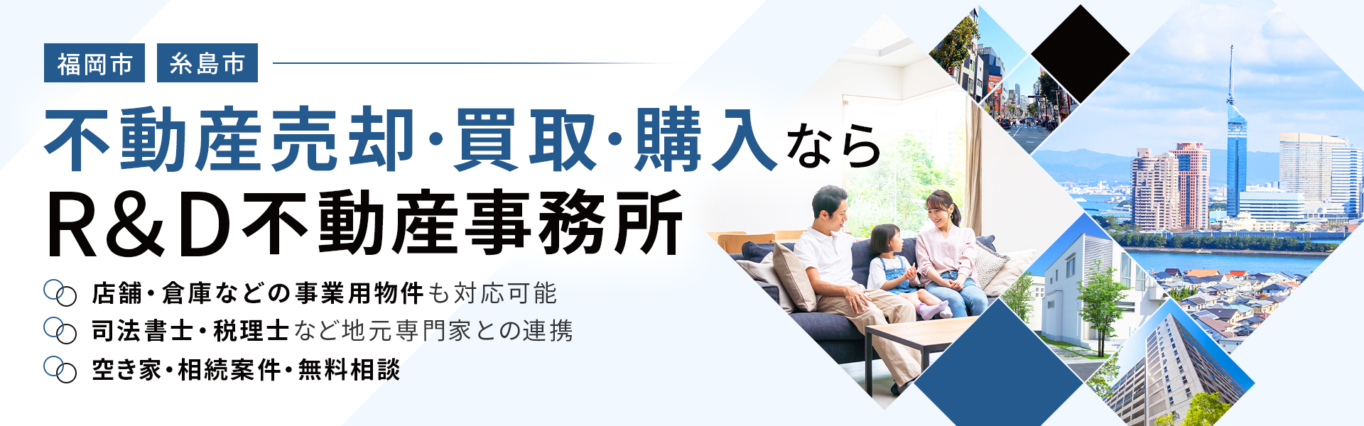福岡市・糸島市を中心に、不動産の売買・賃貸・事業用物件の仲介を手がける R&D不動産事務所です。